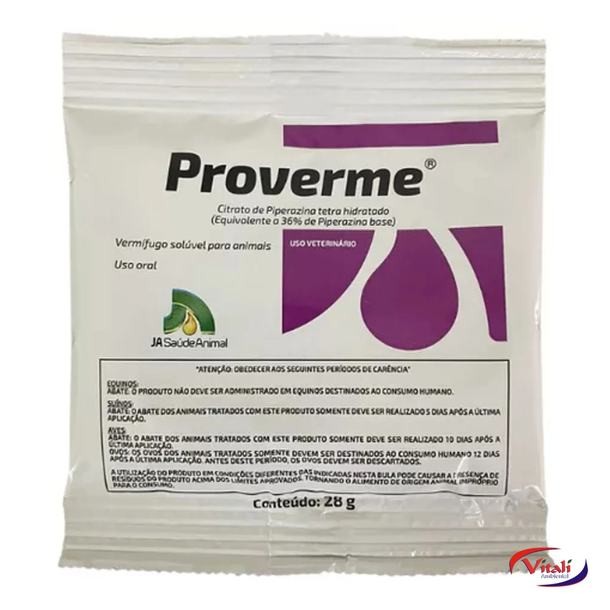 Proverme é um anti-helmíntico eficaz no controle de nematódeos, especialmente Ascaris spp e Oxyuris spp, em bovinos, equídeos, suínos e aves. Sua fórmula contém citrato de piperazina tetrahidratado, equivalente a 36% de piperazina base.